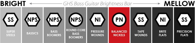 GHS is proud to release Balanced Nickel strings for bass guitar, a combination of traditional string materials and modern string design. Wound over a round steel core with a pure nickel (nickel 205) final cover, Balanced Nickels have the same number of wraps from string to string. This yields a tone that is deep but focused, with an extremely even response, no matter where you are on the fretboard. The end result is a balance between tension, flexibility, tonality and playability.